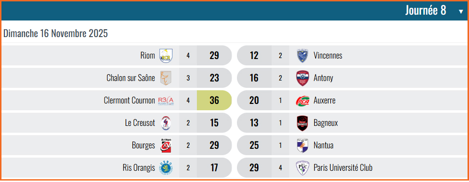 • Résultat et classement des matchs Equipe A 2025-2026