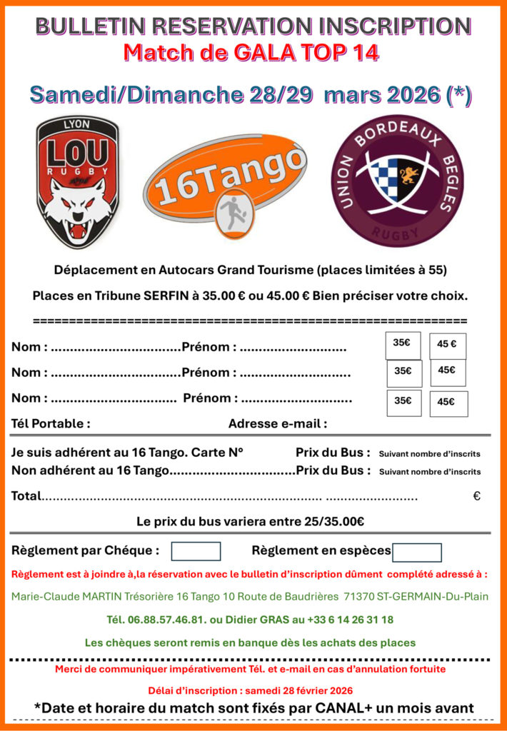 Adhésion au 16 Tango